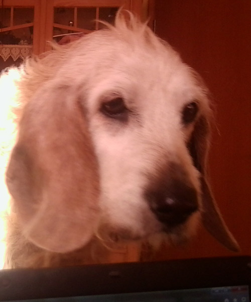 Ein seltenes Bild von Kira im Haus ... naja, es gelang nur, weil sie eben den Kopf unter dem Kissen versteckt hat