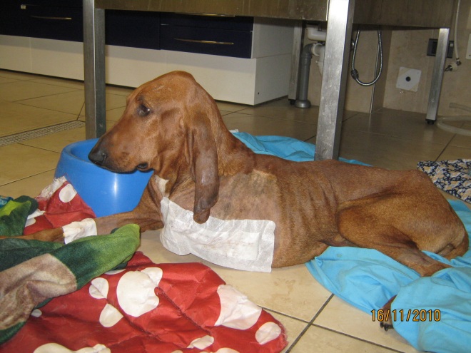 Der Gang ist noch ein wenig unsicher, seine Augen hingegen strahlen einen großen Stolz und einen unbezwingbaren Kampfeswillen aus. Orazio, ein Segugio-Rüde wie er im Buche steht. Doch ein Handicap macht aus ihm ein Opfer. Denn im Herbst 2010 überfuhr ihn ein unachtsamer Mensch mit dem Auto, Orazio verlor danach seinen linken Vorderlauf. Zunächst versuchten die Tierärzte, das Bein operativ zu stabilisieren. Allerdings half es nichts, der Lauf konnte nicht heilen und musste schließlich amputiert werden.