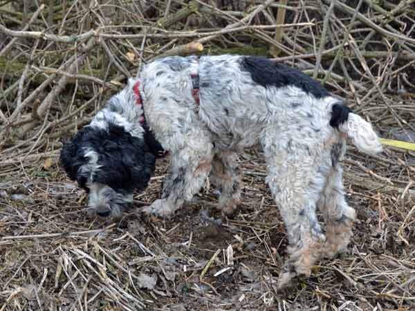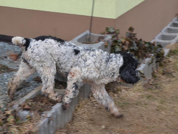 ... da so ein langer Spaziergang mächtig hungrig macht, gab es Kalbsknochen für die Hunde. Pupa wusste aber, dass in der Box auch noch Hühnerhälse sind und versuchte ihr Glück ... leider vergeblich *g*