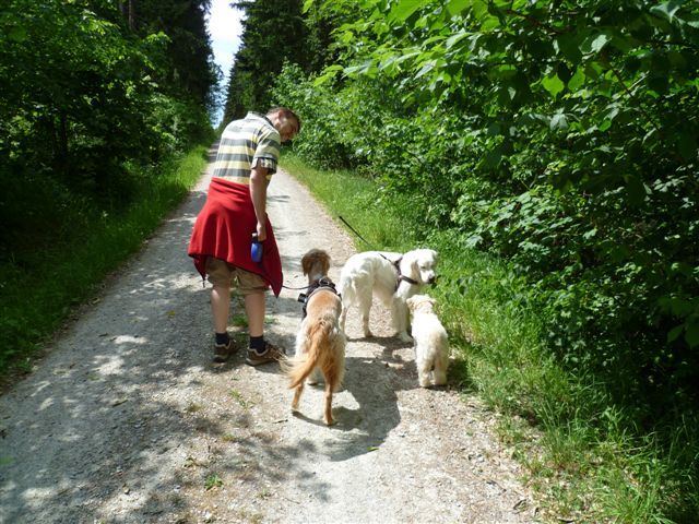 Heute mal einfach eine super erfreuliche Neuigkeit zu unseren eigenen Hündinnen Zampa und Mila. Beide laufen ja sonst immer an der Leine durch den Wald. Aber gestern Abend, als wir mit mehr als 20 Hunden und deren Frauchen und Herrchen mit der Hundeschule Wolfstein im Höllental wandern waren, haben wir uns getraut, auch unsere beiden Mädels streckenweise ohne Leine laufen zu lassen. Sie waren dabei nie mehr als 2 Meter von uns entfernt, Mila hat voll und ganz auf Maximilian geachtet und Zampa auf mich. Ich mag den Satz "ich bin stolz" nicht, aber in diesem Fall passt er wirklich :-) Denn das haben Zampa und Mila wirklich klasse gemacht. Gerade Mila, die noch immer schnell Angst zeigt. Trotz vieler Menschen, vieler Hunde, zahlreicher interessanter Gerüche und auch der Enge der Wege hat besonders Mila die komplette Wanderung erstklassig gemeistert *freu*.
